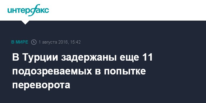 Москва. 1 августа. INTERFAX.RU - Власти Турции арестовали 11 беглых солдат, подозреваемых в причастности к попытке госпереворота в стране, заявил в понедельник вице-премьер Турции Нуман Куртулмуш.