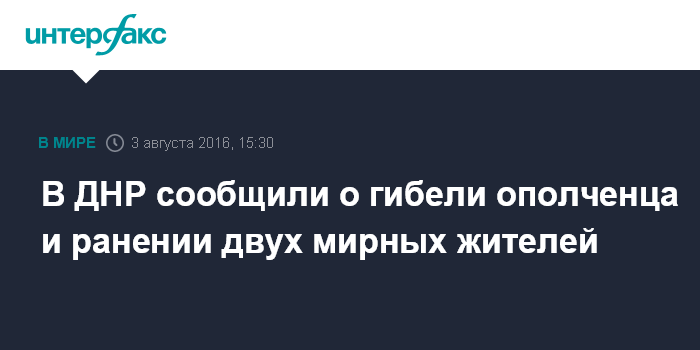 В ДНР сообщили о гибели ополченца и ранении двух мирных жителей