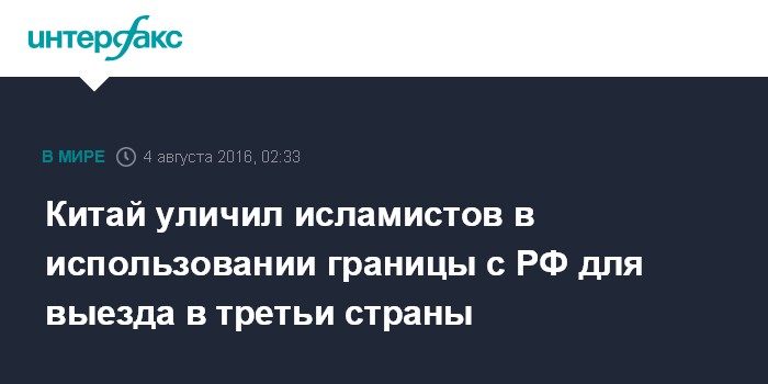 Китай уличил исламистов в использовании границы с РФ для выезда в третьи страны