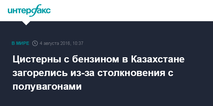 Москва. 4 августа. INTERFAX.RU - Причиной пожара на нефтебазе в Южно-Казахстанской области стало столкновение цистерн с полувагонами, считают в областном департаменте по ЧС в Кзахстане.