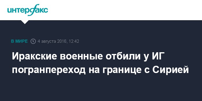 Москва. 4 августа. INTERFAX.RU - Иракские военнослужащие при поддержке ополченцев-суннитов выбили террористов из группировки "Исламское государство" (запрещена в РФ) из погранперехода "Аль-Валид" на границе с Сирией, сообщает в четверг агентство EFE со ссылкой на источник в службах безопасности Ирака.