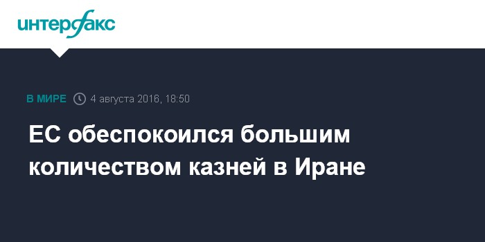 Москва. 4 августа. INTERFAX.RU - Евросоюз в связи с казнью в Иране 20 человек, обвиненных в убийствах и подрыве национальной безопасности, напоминает Тегерану о его обеспокоенности в связи с приведением в исполнение большого количества смертных приговоров в стране. Об этом заявил официальный представитель Европейской внешнеполитической службы (ЕВС).
