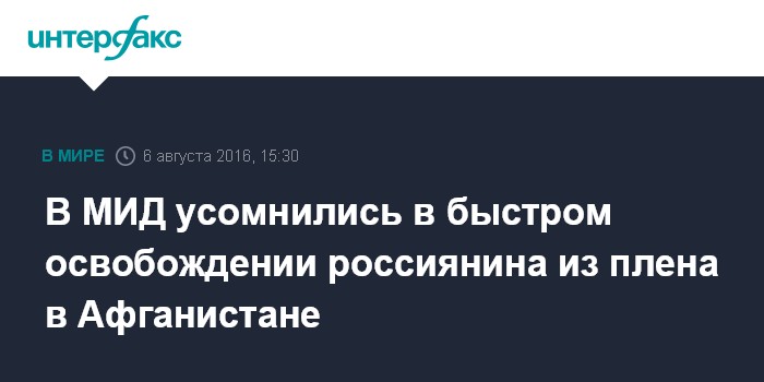Инцидент произошел 4 августа. В МИД РФ сообщали, что посольства России в Афганистане и Пакистане тесно сотрудничают с властями этих стран для освобождения россиянина.