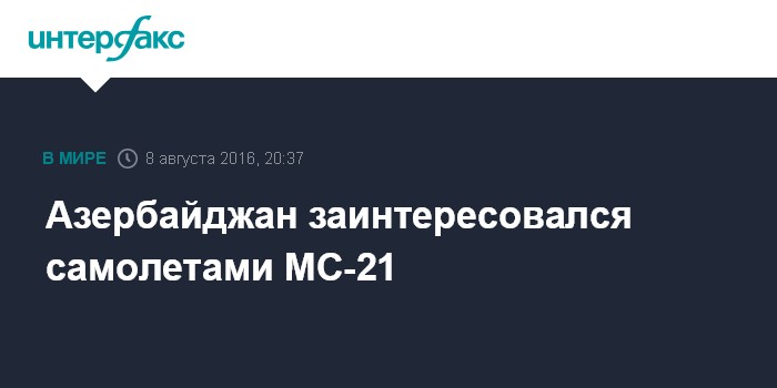 "Азербайджан заинтересовался закупкой российских самолетов МС-21. И после первого вылета этого самолета, а мы планируем, что это произойдет либо в конце этого года, либо в самом начале 2017 года, в феврале мы нацелены на подписание контракта на не менее чем 10 самолетов МС-21", - сказал Рогозин журналистам по итогам трехсторонней встречи президентов России, Азербайджана и Ирана.
