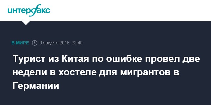 Москва. 8 августа. INTERFAX.RU - Приехавший в Германию Турист из Китая из-за незнания иностранных языков оказался в хостеле для беженцев, сообщает в понедельник BBC.