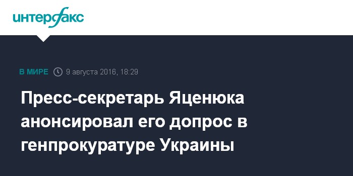 Москва. 9 августа. INTERFAX.RU - Лидер партии "Народный фронт", экс-премьер Украины Арсений Яценюк прибудет в генпрокуратуру в качестве свидетеля в рамках расследования преступлений, совершенных в январе-феврале 2014 года в отношении активистов Евромайдана и ответит на все вопросы следователей, заявляет его пресс-секретарь Ольга Лаппо.