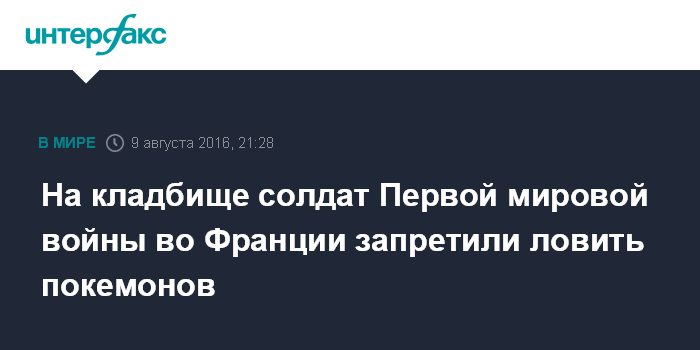 На кладбище солдат Первой мировой войны во Франции запретили ловить покемонов