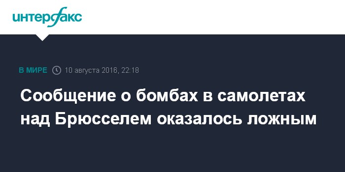 Москва. 10 августа. INTERFAX.RU - Бельгийская прокуратура назвала ложным сообщение о бомбах, заложенных на борту двух пассажирских самолетов, которые должны были приземлиться в среду в Брюсселе, сообщил телеканал RTBF.