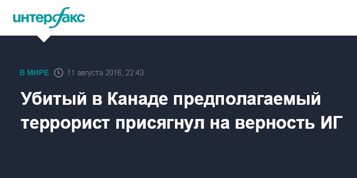 Москва. 11 августа. INTERFAX.RU - Предполагаемый террорист, убитый канадскими полицейскими, присягал на верность лидеру террористической группировки