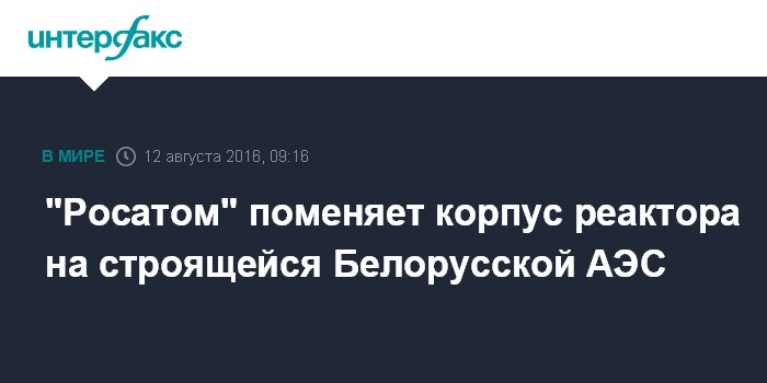 Москва. 12 августа. INTERFAX.RU - "Росатом" по просьбе заказчика поменяет корпус реактора на строящейся Белорусской АЭС, сообщила российская госкорпорация.