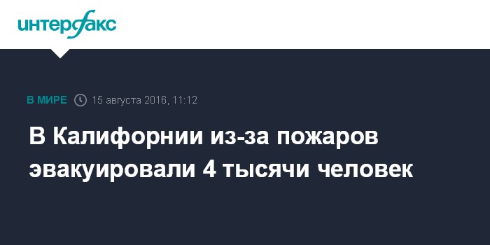 Москва. 15 августа. INTERFAX.RU - Сильные лесные пожары в США привели к эвакуации около 4 тысяч жителей нескольких населенных пунктов на севере штата Калифорния, сообщает в понедельник Associated Press.