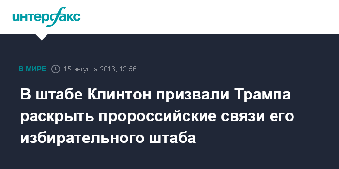 Москва. 15 августа. INTERFAX.RU - Все сотрудники избирательного штаба республиканца Дональда Трампа должны раскрыть информацию о своих связях с Россией, заявил в понедельник глава штаба кандидата в президенты от демократов Хиллари Клинтон Робби Мук.