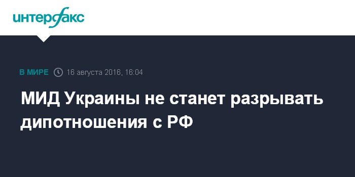 15 августа глава МИД РФ Сергей Лавров заявил, что не видит необходимости в разрыве дипотношений с Украиной. "Не думаю, что в нынешней ситуации кто-то заинтересован в разрыве дипотношений (между Россией и Украиной). Это крайняя мера", - сказал Лавров в понедельник на пресс-конференции по итогам переговоров с главой МИД ФРГ в Екатеринбурге.