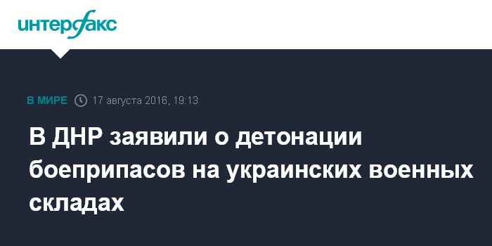 Москва. 17 августа. INTERFAX.RU - Детонации боеприпасов произошла на складе на подконтрольной Украине территории Донбасса, утверждают в Минобороны ДНР.