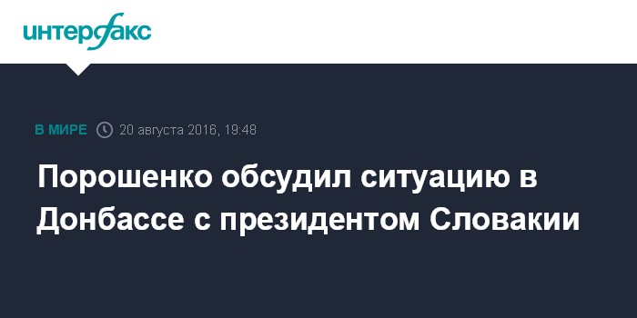 Москва. 20 августа. INTERFAX.RU - Президент Украины Петр Порошенко скоординировал позиции с президентом Словакии Андреем Киской накануне неформального Братиславского саммита ЕС в сентябре, сообщила в субботу вечером пресс-служба главы украинского государства.