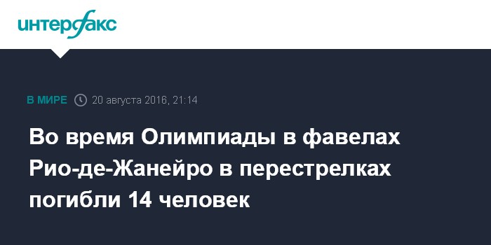 Во время Олимпиады в фавелах Рио-де-Жанейро в перестрелках погибли 14 человек