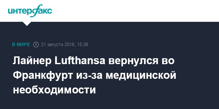 Лайнер Lufthansa вернулся во Франкфурт из-за медицинской необходимости