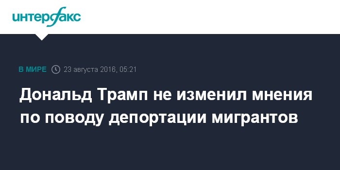 Москва. 23 августа. INTERFAX.RU - Кандидат в президенты США от Республиканской партии Дональд Трамп опроверг сообщения СМИ о том, что он смягчил ранее озвученную позицию по вопросу о массовой депортации мигрантов.