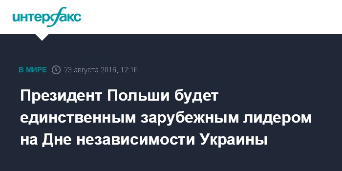 По информации польских СМИ, которые ссылаются на президентскую канцелярию, Дуда будет единственным иностранным гостем в ранге главы государства на праздновании Дня независимости Украины в Киеве.