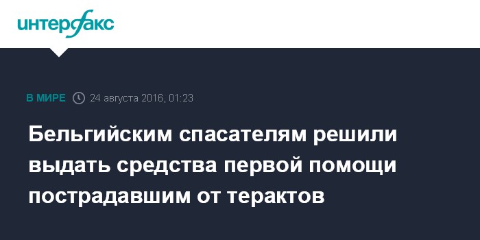 Москва. 24 августа. INTERFAX.RU - Подразделения пожарных-спасателей в Бельгии получат наборы средств первой помощи, специально предназначенных для пострадавших в терактах, сообщили во вторник вечером бельгийские СМИ.