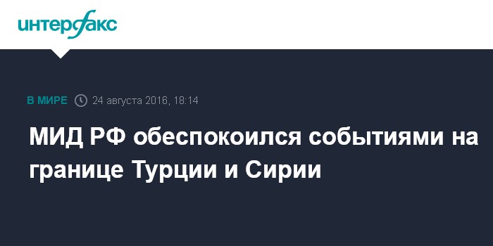 Москва. 24 августа. INTERFAX.RU - В Москве обеспокоены событиями в районе границы Сирии и Турции и возможностью дальнейшего ухудшения обстановки с учетом противоречий между арабами и курдами.