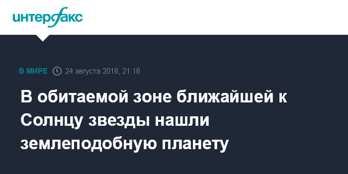 Москва. 24 августа. INTERFAX.RU - Международная группа астрономов заявила об открытии экзопланеты Proxima b у ближайшей к Солнцу звезды — Проксимы Центавра. О находке ученые рассказали на пресс-конференции в штабе Южной европейской обсерватории (Гархинг, Германия), исследование будет опубликовано в журнале Nature, сообщает в среду издание N+1.