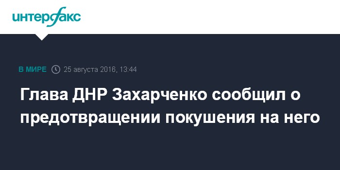 Москва. 25 августа. INTERFAX.RU - Глава самопровозглашенной Донецкой народной республики Александр Захарченко заявил, что предотвращено покушение на него.