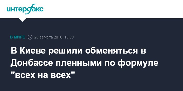 Москва. 26 августа. INTERFAX.RU - Украинская сторона заявила, что готова обменяться в Донбассе пленными по формуле "всех на всех". Об этом заявил советник главы Службы безопасности Украины Юрий Тандит в эфире телеканала "112.Украина".