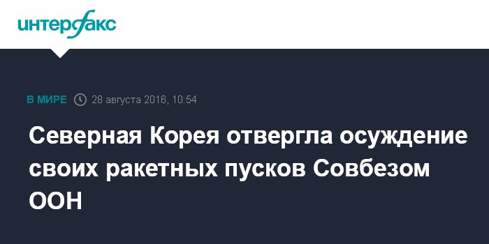 Москва. 28 августа. INTERFAX.RU - Пхеньян в воскресенье отверг принятое СБ ООН заявление, осуждающее пуски Северной Кореей баллистических ракет, сообщил официальный представитель северокорейского министерства иностранных дел.