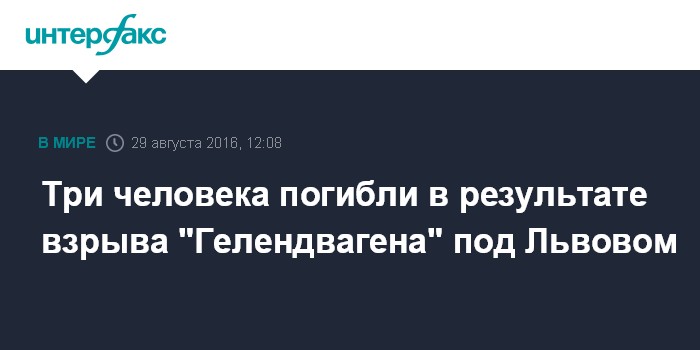 Москва. 29 августа. INTERFAX.RU - Автомобиль взорвался под Львовом, погибли три человека, сообщает местное интернет-издание zaxid.net со ссылкой на Главное управление Нацполиции Украины в области.