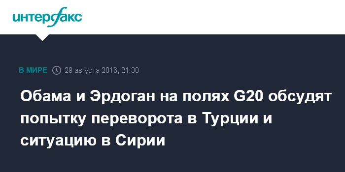 Обама и Эрдоган на полях G20 обсудят попытку переворота в Турции и ситуацию в Сирии