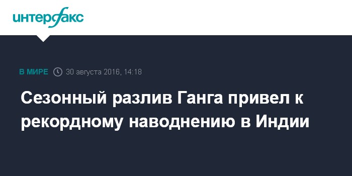 Москва. 30 августа. INTERFAX.RU - Наводнение, вызванное разливом реки Ганг в Индии, стало рекордным по подъему уровня воды, передает "Би-би-си".