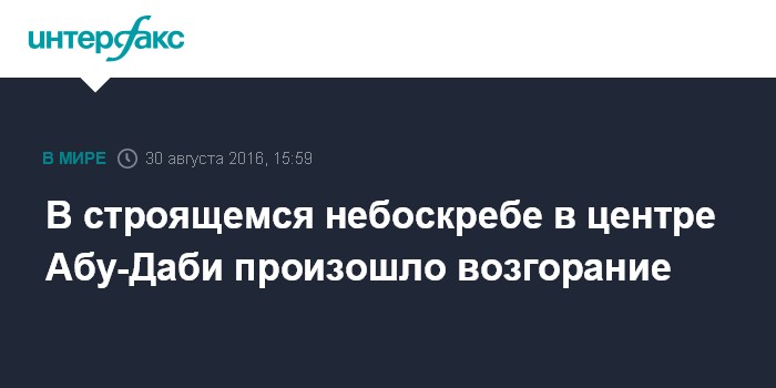 Москва. 30 августа. INTERFAX.RU - Сильный пожар вспыхнул на территории строящегося 28-этажного небоскреба в центральной части столицы ОАЭ Абу-Даби, сообщают во вторник западные СМИ.