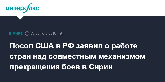 Москва. 30 августа. INTERFAX.RU - Москва и Вашингтон вырабатывают механизм для восстановления режима прекращения огня в Сирии, заявил посол США в РФ Джон Теффт.