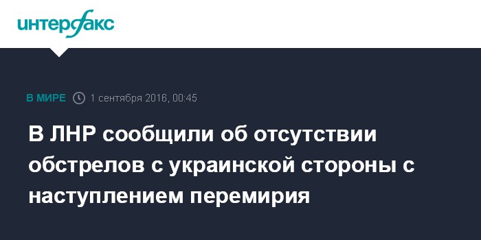 Москва. 1 сентября. INTERFAX.RU - Режим "бессрочного перемирия" в Донбассе, о введении которого с 00:00 (по московскому времени) 1 сентября договорились участники Контактной группы в Минске, соблюдается, сообщил "Интерфаксу" источник в Народной милиции самопровозглашенной Луганской народной республики (ЛНР).