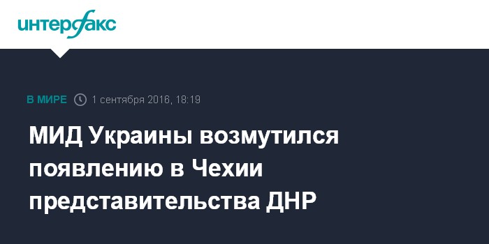 Москва. 1 сентября. INTERFAX.RU - Министерство иностранных дел Украины направило ноту протеста в посольство Чехии в связи с регистрацией в чешском городе Острава представительства самопровозглашенной Донецкой народной республики, сообщила "Интерфаксу" спикер МИД Марьяна Беца.