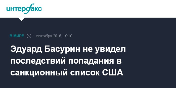 "Я никакого отношения к США не имею, и уж тем более не имею там никаких счетов. Поэтому к чему такая честь, не понимаю", - сказал Басурин "Интерфаксу".