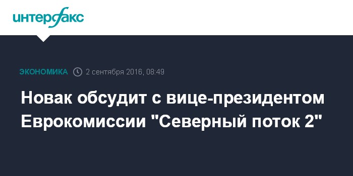 Москва. 2 сентября. INTERFAX.RU - Глава Минэнерго РФ Александр Новак и вице-президент Еврокомиссии по энергосоюзу Марош Шефчович при встрече обсудят "Северный поток 2", сообщил сам Новак журналистам в кулуарах Восточного экономического форума (ВЭФ-2016).
