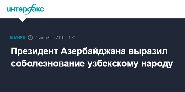 Москва. 2 сентября. INTERFAX.RU - Президент Азербайджана Ильхам Алиев выразил соболезнование узбекскому народу в связи со смертью Ислама Каримова.