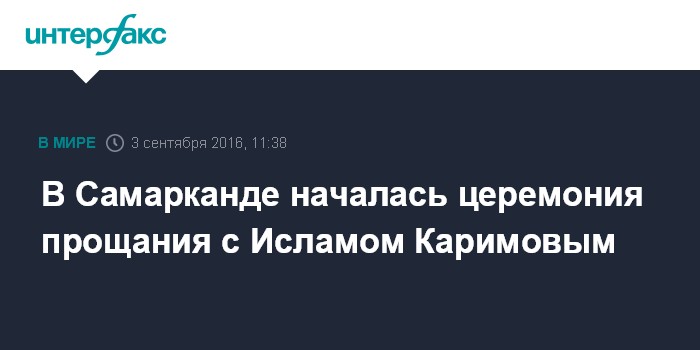 Москва. 3 сентября. INTERFAX.RU - В Самарканде началась траурная церемония прощания с президентом Узбекистана Исламом Каримовым, передает корреспондент "Интерфакса" с места события.