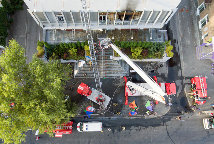 Накануне манифестанты жгли шины у здания телекомпании. Там, по данным чрезвычайных служб, дважды вспыхивал пожар. Второй раз из здания пришлось эвакуировать сотрудников, в том числе 25 человек сняли с крыши.