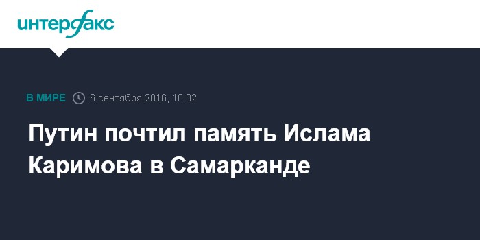 Путин во время общения с журналистами в понедельник в китайском Ханчжоу сказал: "Я думаю, что я завтра обязательно заеду для того, чтобы поклониться его (Каримова - ИФ) памяти". По словам президента РФ, "для Узбекистана это большая потеря". "Это беда, когда человек из жизни уходит", - добавил он.