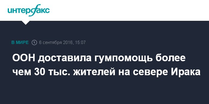 Москва. 6 сентября. INTERFAX.RU - Более 30 тыс. жителей города Эль-Кайяр, расположенного на севере Ирака, впервые за последние два года получили продовольственную помощь от сотрудников Всемирной продовольственной программы ООН (ВПП).