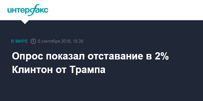По данным последнего опроса, результаты которого публикует телеканал, Трамп опережает Клинтон лишь на 2%: за кандидата от республиканцев готовы проголосовать 45% избирателей, тогда как за кандидата от демократов - 43%.
