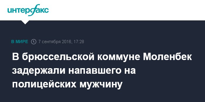 Москва. 7 сентября. INTERFAX.RU - На двоих полицейских, патрулировавших в Брюсселе парк в коммуне Моленбек, во второй половине дня в среду напал человек с ножом.