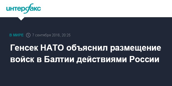 "Причина размещения четырех батальонов НАТО в странах Балтии и Польше заключается в том, что мы увидели военные устремления России, ее желание использовать силу в отношении соседей",