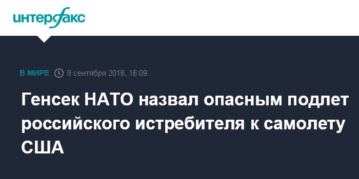 "Вчера мы получили сообщения об очередном случае опасного поведения российских самолетов, которые подлетали слишком близко к американскому самолету в международном воздушном пространстве", - заявил генсек в четверг в ходе визита в Грузию.