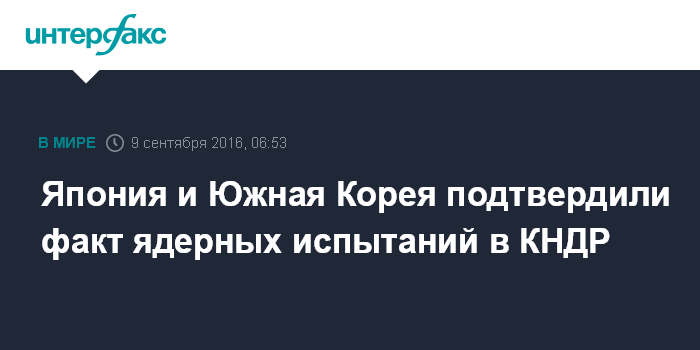 Москва. 9 сентября. INTERFAX.RU - Генеральный секретарь кабинета министров Японии Есихидэ Суга на пресс-конференции заявил о подтверждении проведения Пхеньяном ядерного испытания, передает телекомпания NHK.