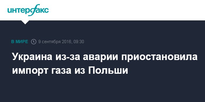 Москва. 9 сентября. INTERFAX.RU - Украина приостановила импорт природного газа со стороны Польши из-за разгерметизации газопровода во Львовской области, сообщил "Интерфаксу" пресс-секретарь ПАО "Укртрансгаз" Максим Белявский.