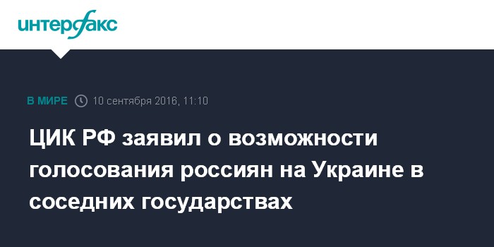 Москва. 10 сентября. INTERFAX.RU - В ЦИК РФ считают, что граждане России смогут выехать в соседние с Украиной государства для того, чтобы принять участие в голосовании на парламентских выборах 18 сентября.